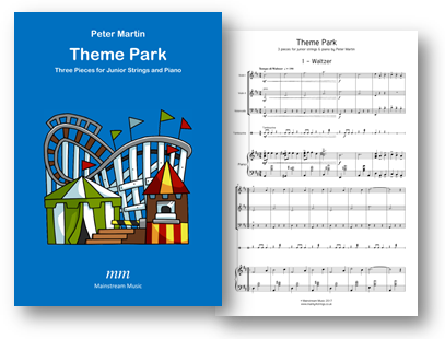A short, flexible suite in three movements, featuring musical representations of three ‘theme park’ rides. The PDF contains melody parts for viola and cello, a viola part doubling that of the violin II part and a part for double bass. When used with less experienced players, the piece can successfully be performed omitting the violin I/melody part. The backing tracks include a slowed down version of the last movement. Click here to listen to a recording of the piece. Click on the image below to view the score.