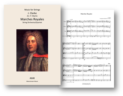 Two marches by Jeremiah Clarke, ‘King William’s March’ and ‘Prince Eugene’s March’, arranged for string orchestra/quartet. The PDF also contains parts violin III (doubling that of the viola) and double bass.