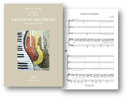 A setting for mixed strings and piano of Faure’s exquisite ‘Canticle of Jean Racine’. The PDF contains parts for violin III and viola ( in lieu of cello), and a part for viola, doubling that of the violin II part. This versatile arrangement can be played by a number of different combinations, from just two/three violins and piano to a full massed string group with piano. Click here to listen to a recording of the piece. Click on the image below to view/listen to the score on YouTube. Click here to visit the score's page.
